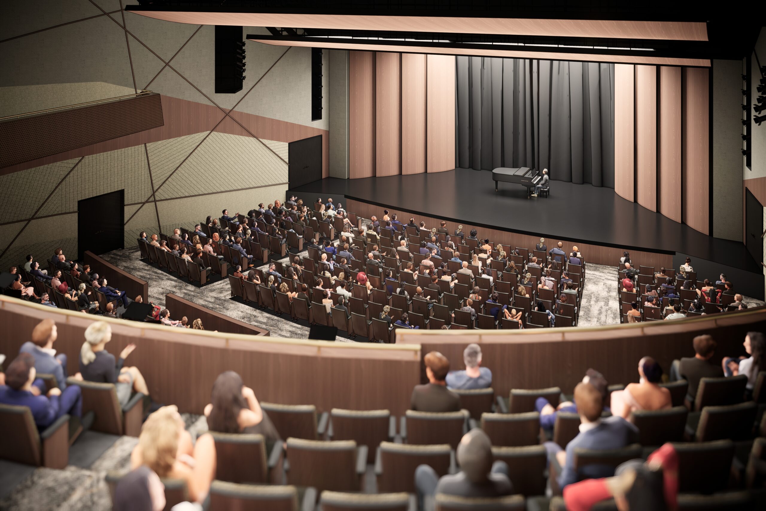 The new Bixby Performing Arts Center will be located at the corner of Dawes Avenue and Montgomery Street to create a destination to anchor the east end of the downtown area. As Bixby continues to grow, this local venue will provide the opportunity for gathering spaces for events, for patrons to see quality traveling performers in their own backyard, and provide the necessary venue for performances by Bixby Public Schools. The facility will be approximately 62,500 square feet with an outdoor plaza, public lobby, performance hall that seats 1,200 patrons, restrooms, and a multi-purpose event space. Back-of-house support spaces will include dressing rooms, performer’s lounge, scenery repair, catering kitchen, storage, loading dock, and mechanical spaces.