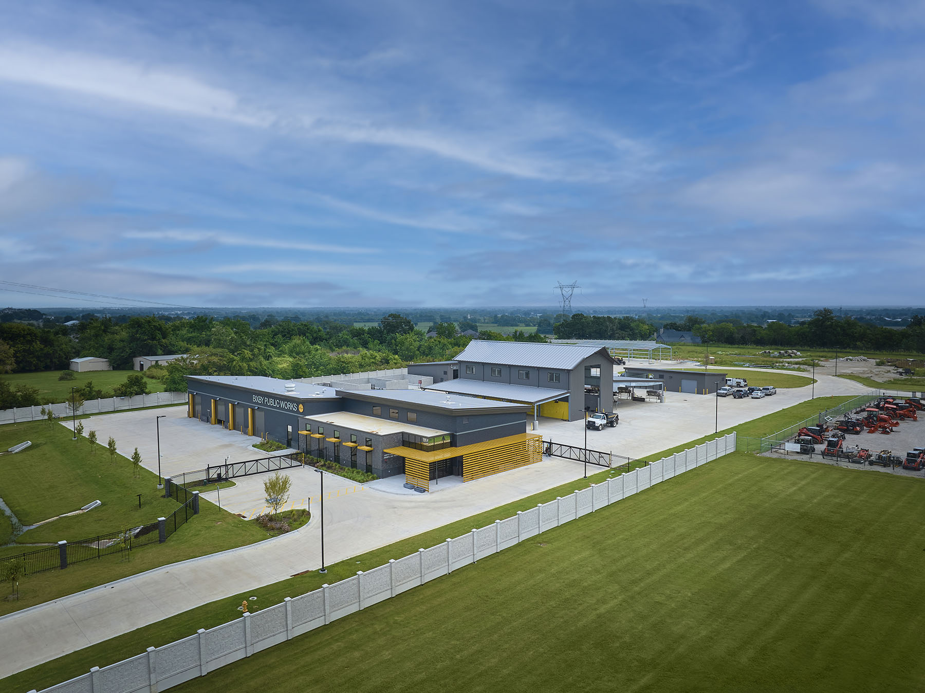 Beck Design worked closely with the City of Bixby and Public Works Department’s leadership teams to ensure all current and future needs were analyzed and incorporated into the architectural design. This collaboration brought about a public works facility that incorporates the rugged and durable elements needed for this type of complex with subtle nods to the adjacent neighborhood and the newly established City of Bixby design guidelines. The combination of these elements creates a complex that elegantly fits into the neighborhood context while providing all the spaces needed to continue serving their growing City. The new complex has a total of five buildings, all arranged to maximize flexibility, work efficiency, and most importantly balance cost and account for future growth and expansion.